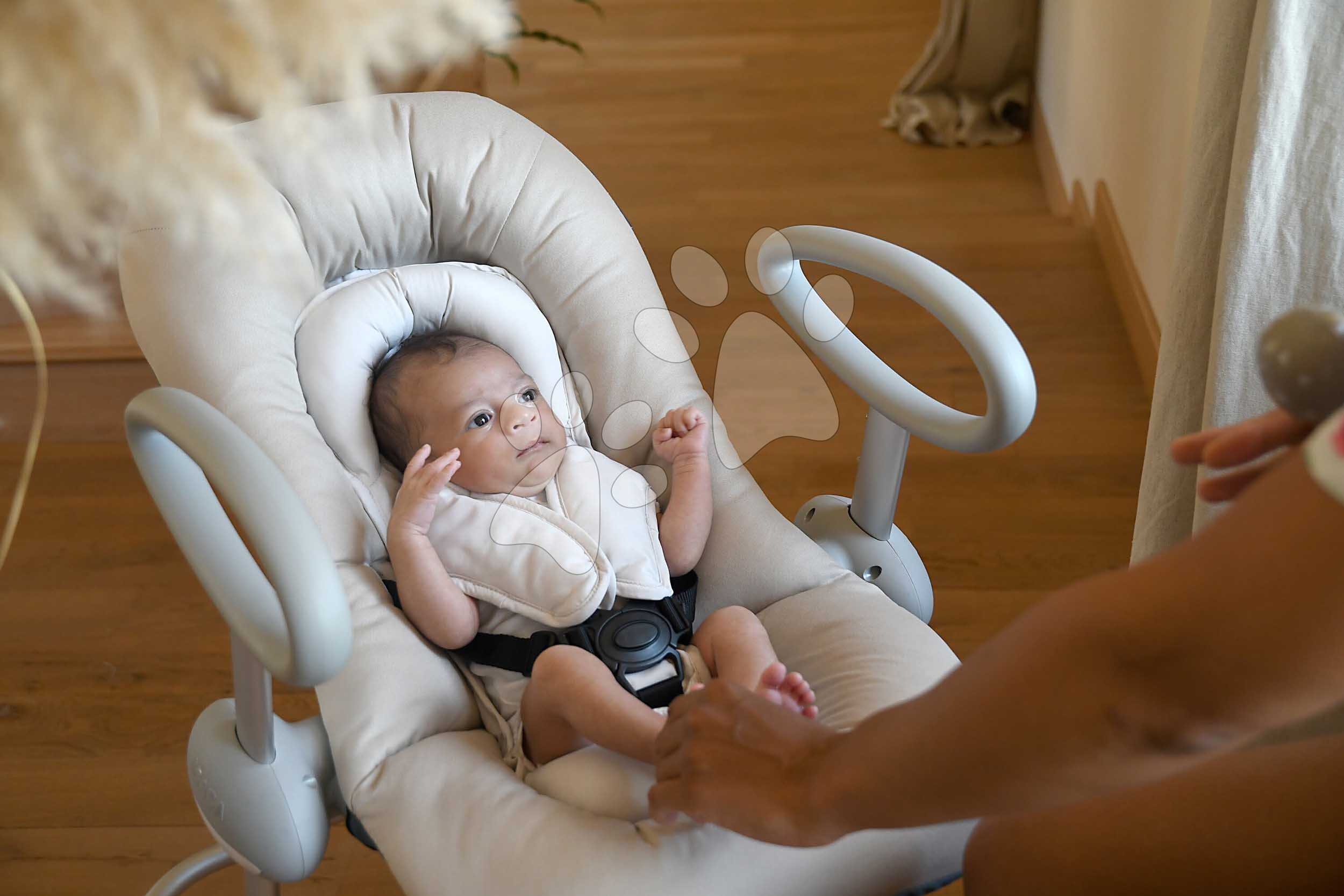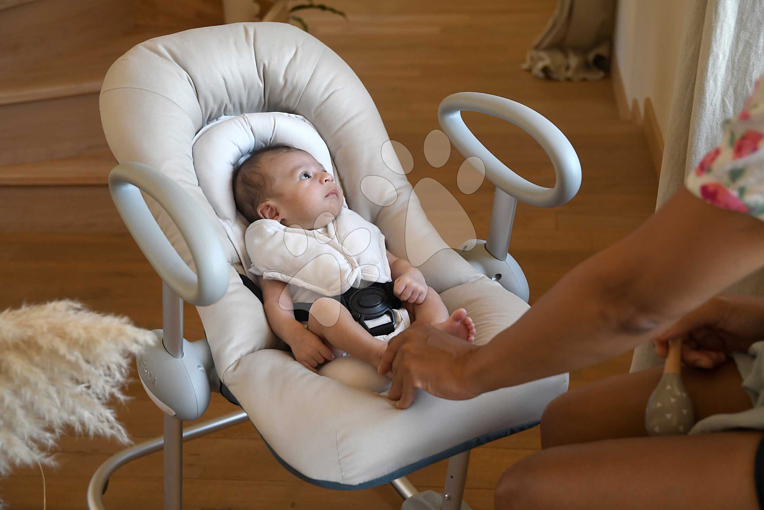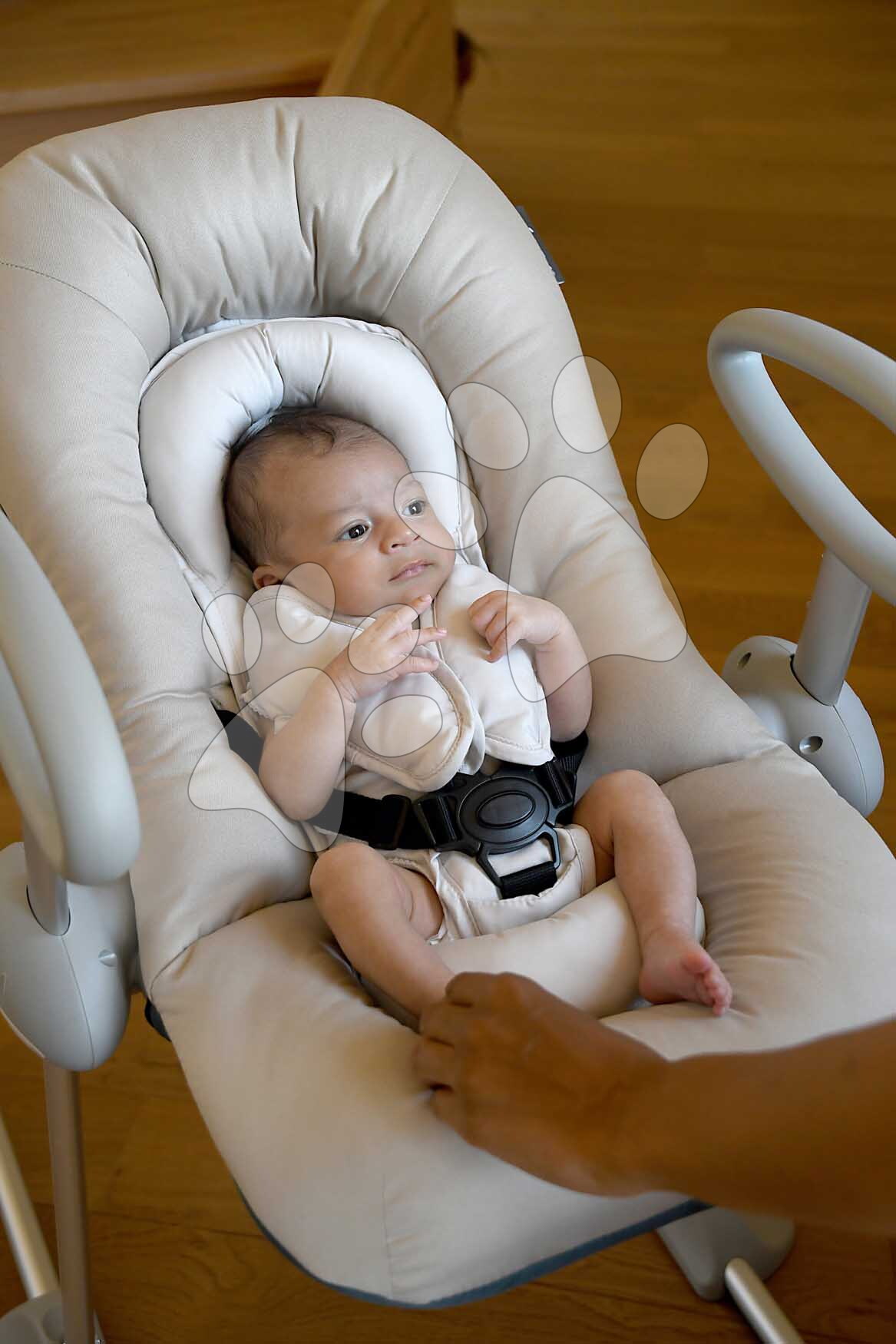 Șezlongul Beaba în nuanțe de maro poate fi reglat în înălțime în 4 poziții foarte ușor – este suficient să apăsați siguranțele de pe ambele picioare ale șezlongului și să îl ridicați sau să îl coborâți. Bebelușul poate fi astfel la nivelul părinților sau al fraților mai mari, observând tot ce se întâmplă în jur, fiind în permanentă interacțiune cu mediul și simțindu-se în siguranță. Leagănul poate fi, de asemenea, înclinat în 3 poziții cu o singură mână – inclusiv într-o poziție ideală pentru un somn confortabil. Bebelușul poate fi asigurat în șezlong cu centura de siguranță în 5 puncte, astfel încât să nu cadă și să se simtă protejat.